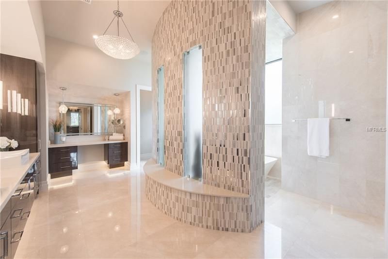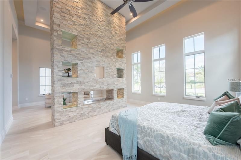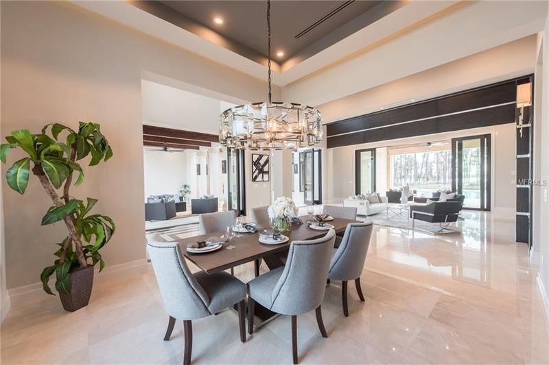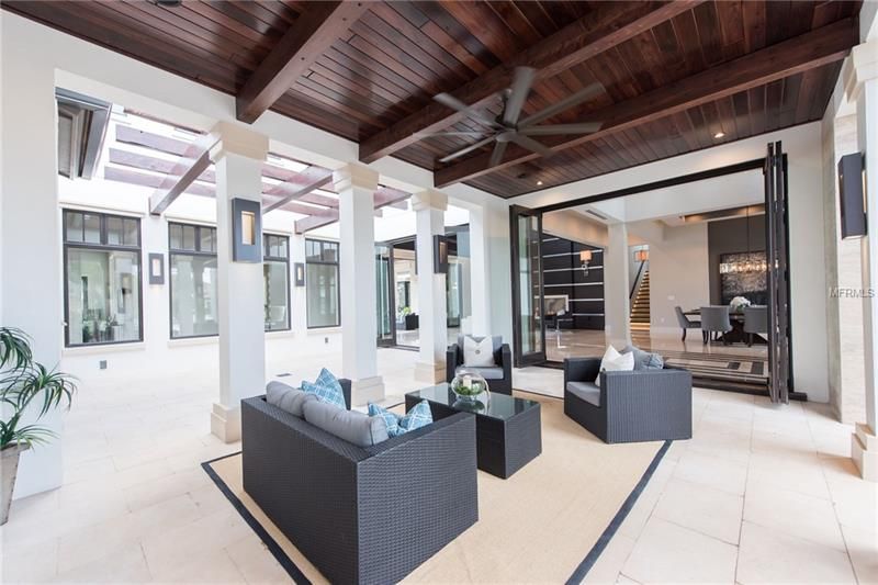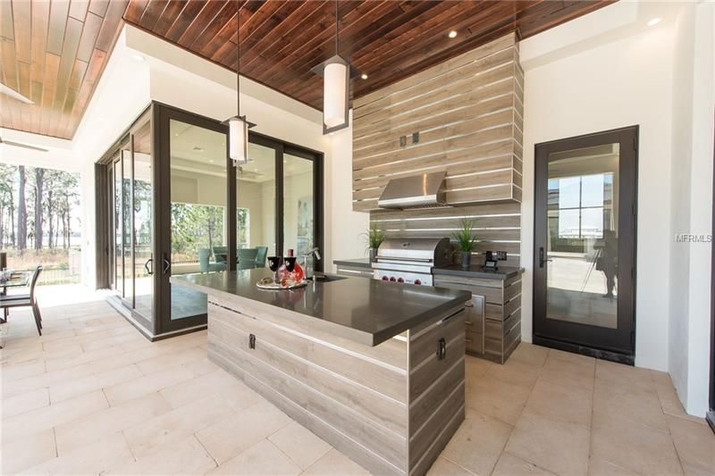 This magnificent estate at the Lake Nona Golf and Country Club provides the rare opportunity to live on the shores of Lake Nona. Built by DeVoe Custom Homes, this six bedroom and seven and one half bathroom home offers breathtaking views and luxurious details within the modern-transitional design. Rich stone floors stretch throughout the first floor and combine with large windows and phantoms screens to frame picturesque views of Lake Nona within this lakefront estate. A formal dining room, living room with wooden barrel ceiling and inner courtyard with gas fireplace all sit near the main entrance of the home. Off of the inner courtyard is a private guest suite secluded and separate from the main estate. The master suite includes a private covered porch, his and her walk-in closets and a morning bar. The open concept kitchen features Quartz countertops, Wolf SubZero appliances, breakfast area and a large center island that flows into the family room. Accessible via stairs or elevator, the upstairs of the home contains three additional en-suite bedrooms, along with a kid’s loft, an oversized game room and a large balcony with sparkling views of Lake Nona. Perfect for entertaining or taking in warm Florida breezes, the exterior of the home provides two large covered porches, a summer kitchen, a sparkling pool and overlooking beautiful Lake Nona.